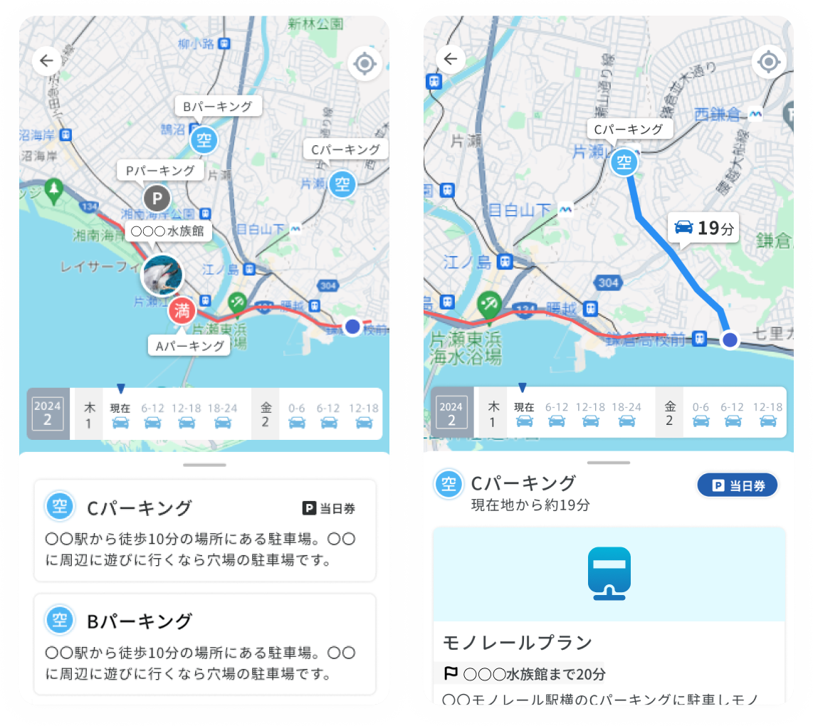 各パーキングの満空情報を表示し、