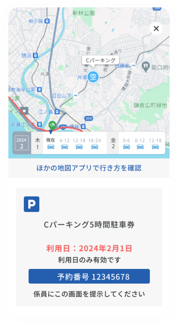 今の時刻において別の推奨駐車場に車を停めて、